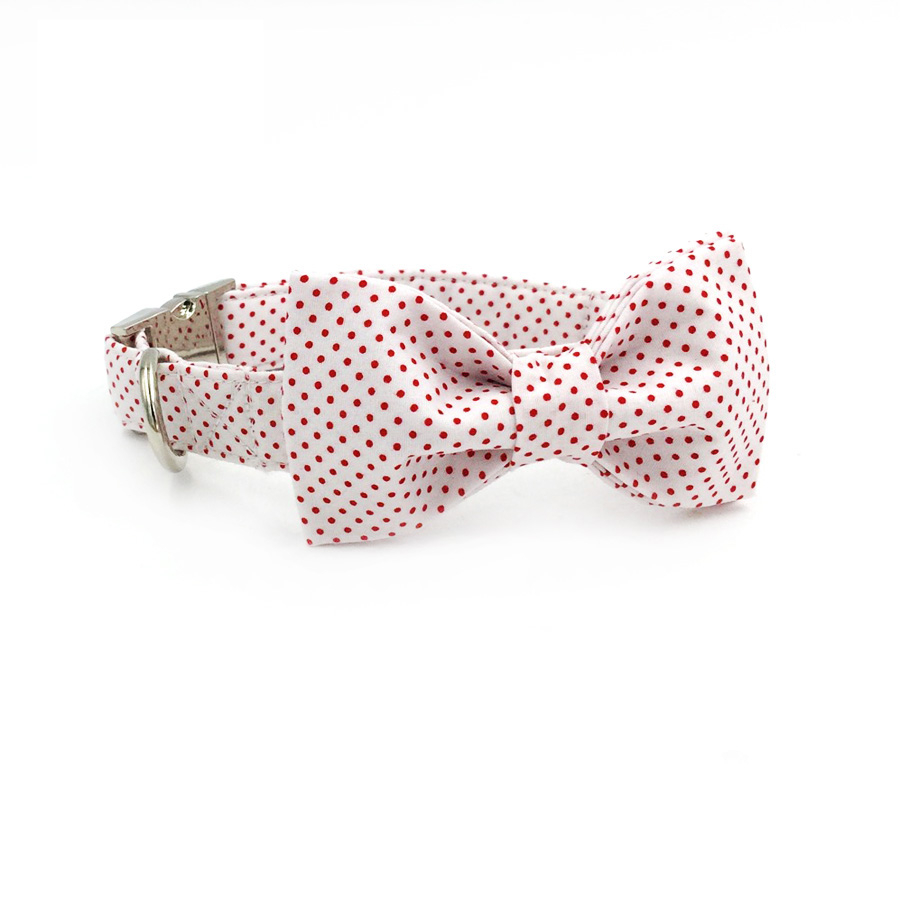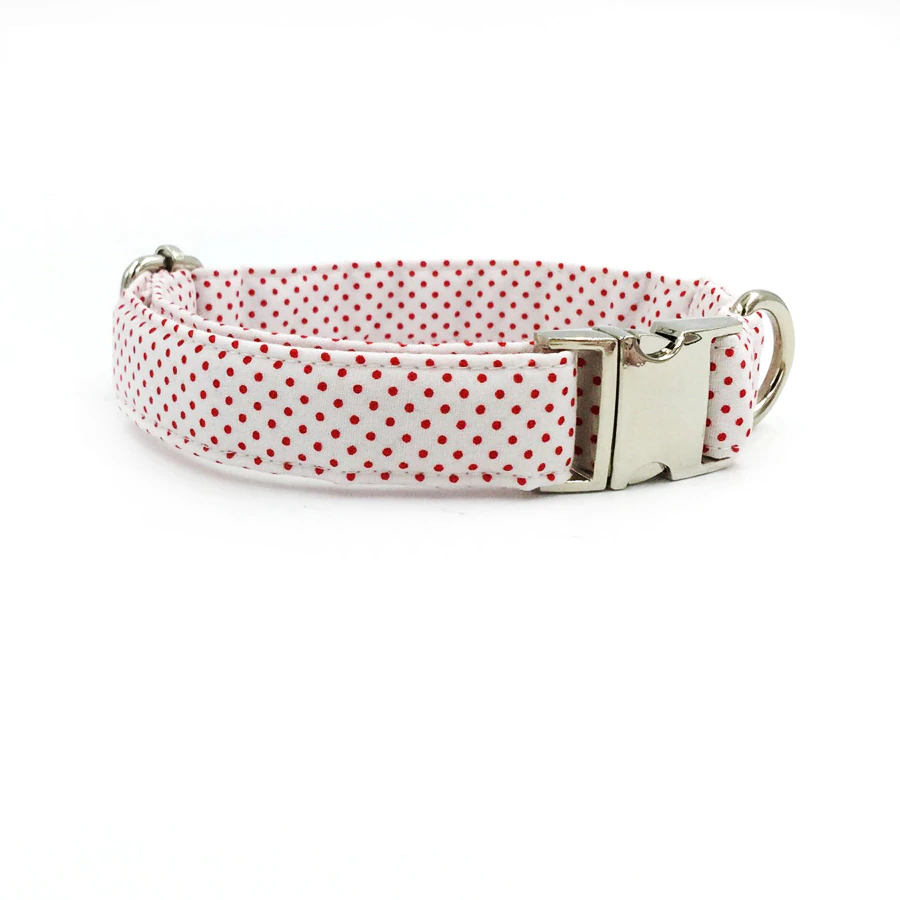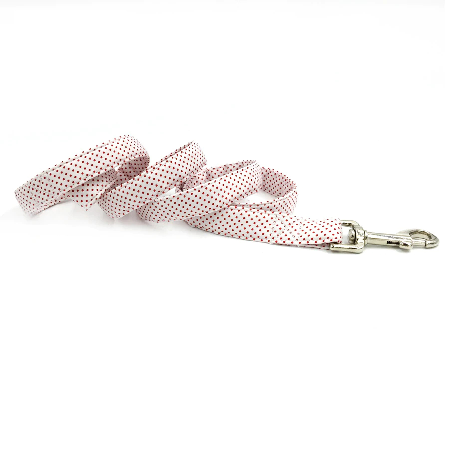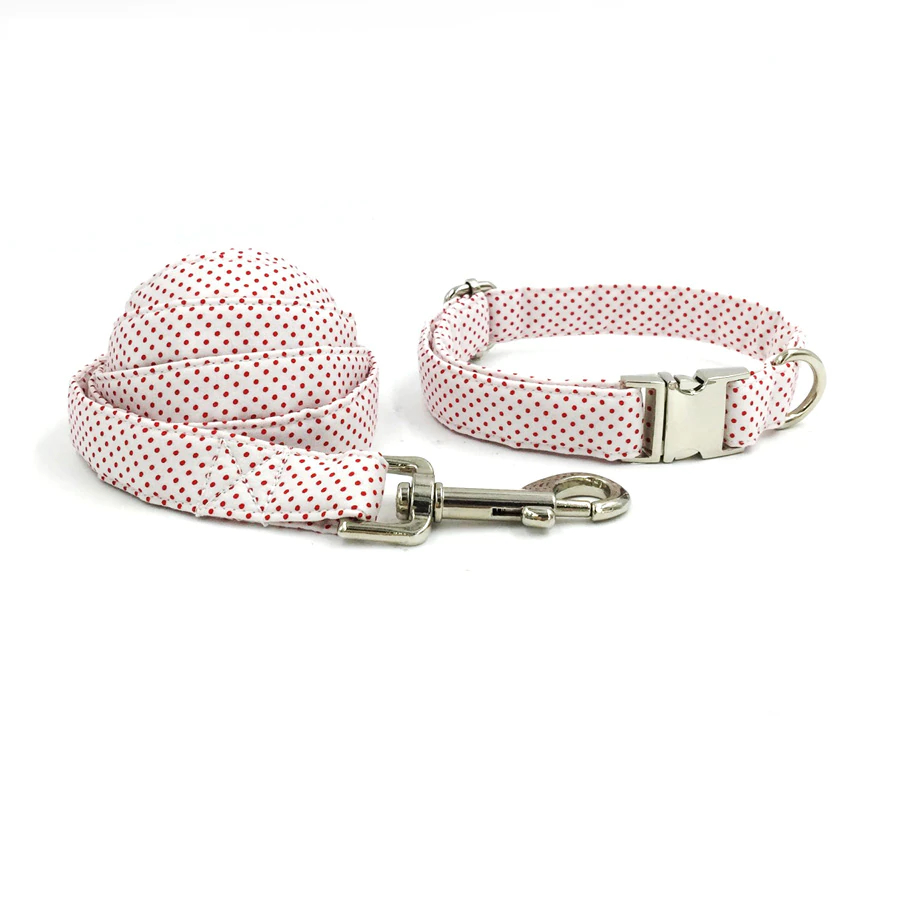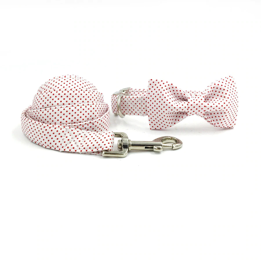 White Polka Dot Cotton Dog Collar and Leash Set with Bowtie